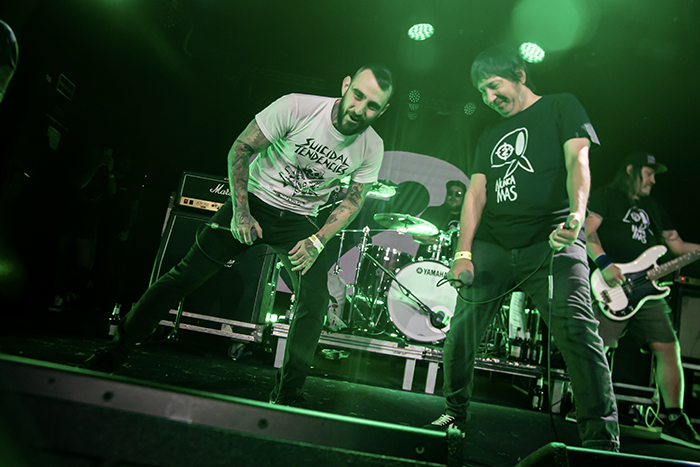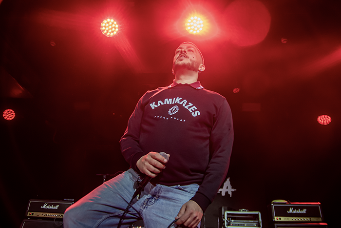 Vago fusionó la noche con ese ska punk que es marca registrada de la banda. Jason arrancó con guiño cinematográfico y humor, pero nadie se confundió: debajo de la broma hay una canción con estructura de clásico. Piñas fue el momento de la noche en que la banda casi que sobraba, el coro del público fue tan masivo, tan preciso, tan brutal, que los propios músicos parecían disfrutar más escuchando que tocando. Un invitado de Kaos Urbano terminó de sellar el momento. Amor Suicida demostró, una vez más, que hay canciones que en directo crecen hasta dimensiones que el estudio nunca podría capturar.