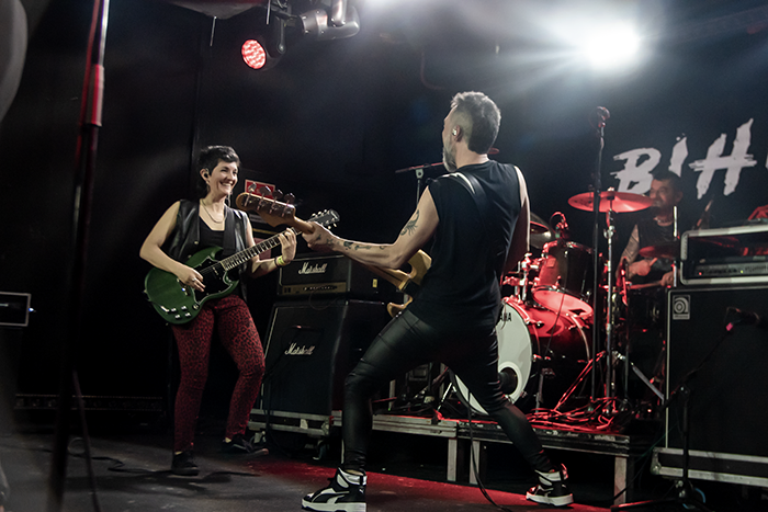 La noche arrancó a las 19:30 con Bihotza sobre el escenario. La banda Bilbao – Madrileña no vino a calentar motores, vino a prender fuego. Corazón Ardiendo y Enganchado A Tu Veneno se convirtieron en himnos coreados por una audiencia que ya los esperaba como si fueran viejos amigos. Y no es casualidad, tener a Iván Pozuelo Guevo —batería de SKA-P— detrás de la tarola le da a cualquier banda un peso específico difícil de ignorar. La puesta de escena de Calero LDN completó la ecuación con una energía que mezcla lo caótico con lo consciente, lo irreverente con lo político.