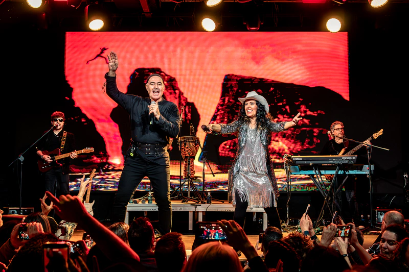 Tras el saludo cercano —agradecimiento, memoria compartida y reflexiones reivindicativas fieles a su trayectoria— el concierto tomó velocidad de crucero. Las coreografías son una constante y aportaban dinamismo. Se movían por todo el escenario, se acercaban a los músicos, chocaban manos con el público. La química entre ambos sigue intacta, con esa mezcla de complicidad y carácter que los ha definido durante más de tres décadas.