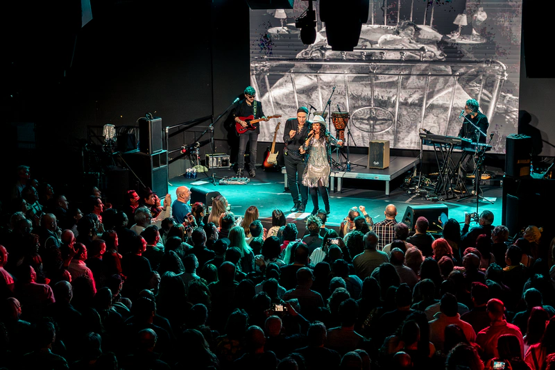 Hubo espacio para una invitada. Natalia Mancilla, presentada con cariño por Cristina, se sumó al directo con presencia magnética. Su intervención añadió un matiz distinto, casi teatral, que el público recibió con entusiasmo. Las gargantas se unieron en una sola voz que nacía desde el patio de butacas y regresaba amplificada desde el escenario.