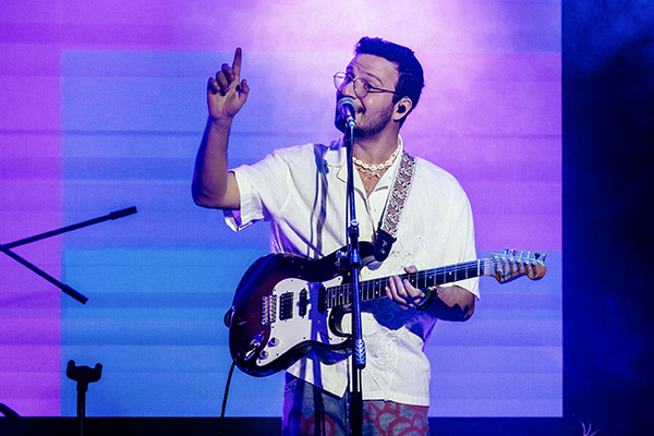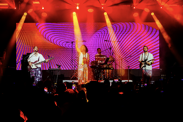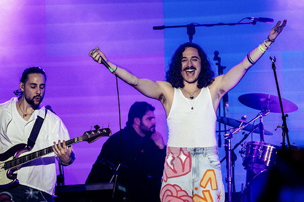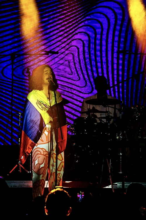 Luego, Anakena se apoderó del escenario. Lo primero que me llamó la atención fue su coherencia visual: cada integrante con su estilo bien marcado. Mikel con zapatos de Hello Kitty que previamente habían mostrado en Instagram sin decir quién los llevaría, Antonio con camisa de aires rockeros, Santiago con collar playero, y el Mara ¡cómodo y entregado! con una energía impecable. Hay música, hay una imagen pensada, un lenguaje en común, algo que particularmente le da un puntazo a la banda en concierto.
