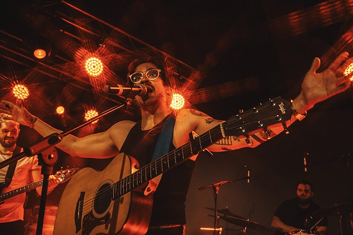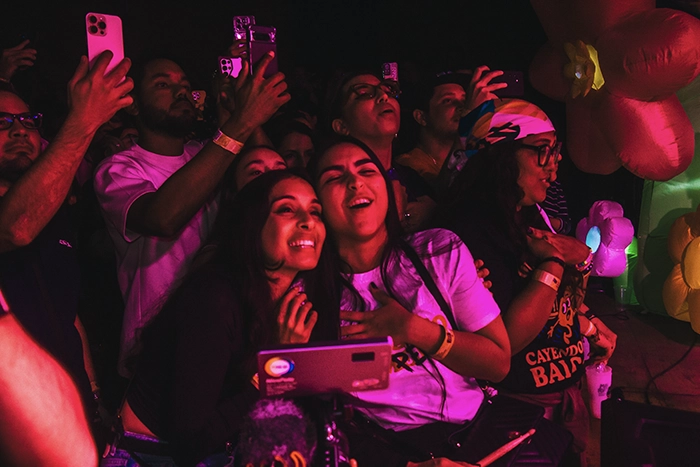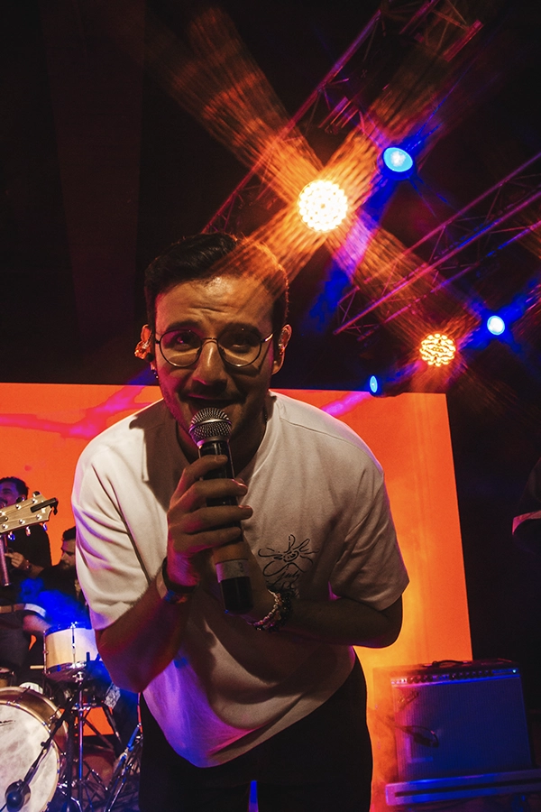 Céntimos fue el primer tema en sonar… y con esto inició una noche mágica para todos los asistentes. Gente saltando, coreando y grabando notas de voz se podían observar entre la multitud.