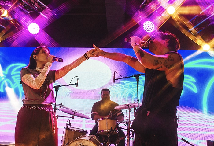 Público de todas las edades se ubicaron en la planta baja del centro comercial para no solo celebrar, sino descubrir un nuevo talento, Dyan Wav, ver rostros conocidos como Gran Celaje o La Cueva Soundsystem y, por último pero no menos importante, cantar cumpleaños junto a Alberto Arcas (voz y guitarra) y Kevin Yousef (bajo), los muchachos de Okills.