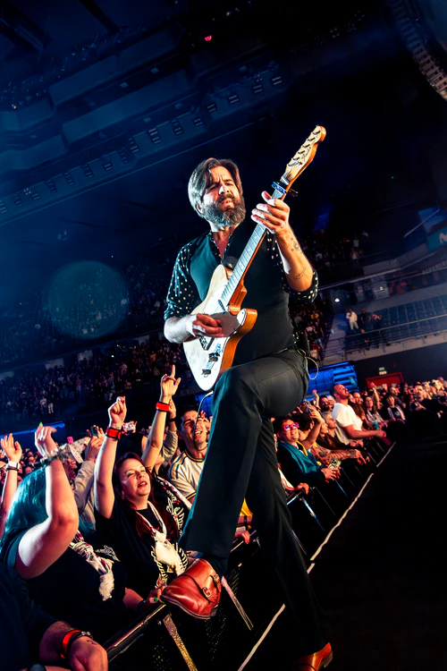 En la penúltima pieza, un pequeño imprevisto: Rafa Val bajó al foso para cantar entre el público y su petaca de sonido se rompió. La banda, impasible, continuó, y el público tomó el relevo, cantando los versos al unísono. Fue un diminuto percance convertido en magia, un recordatorio de que la emoción no necesita perfección.