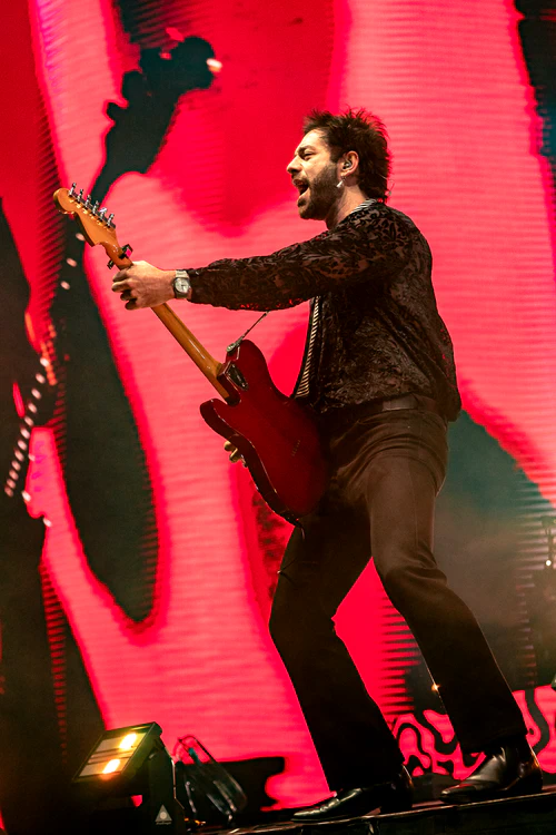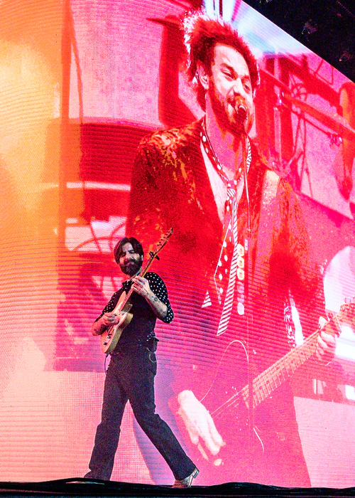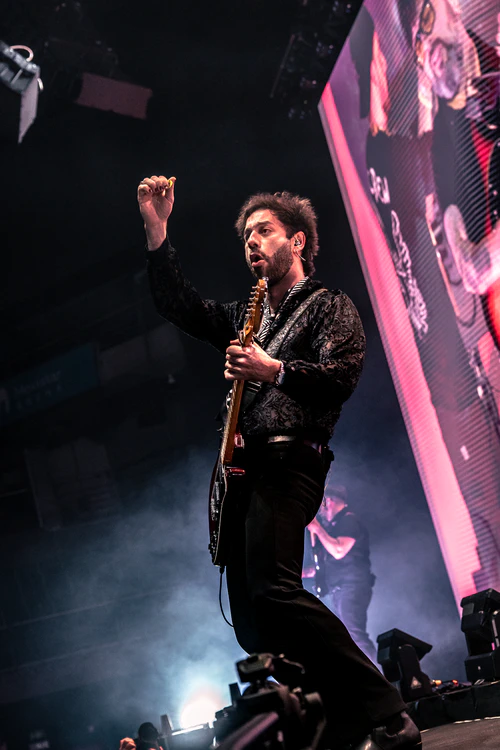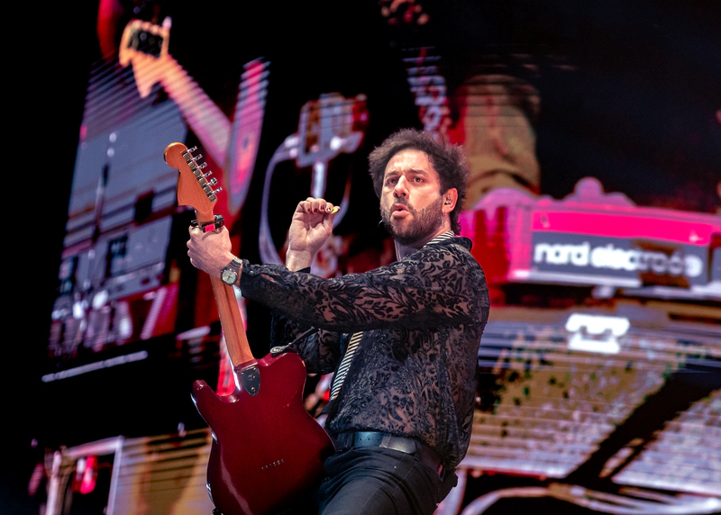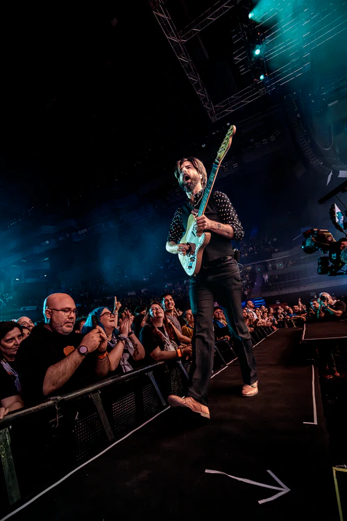 El escenario, dividido en tres alturas y rematado por un mini stage frontal, con cuatro escalones y una pequeña pasarela, permitió al cantante, al bajista y al guitarrista acercarse tanto a la primera fila que algunos fans lograron rozarles la mano en más de una ocasión, tocar las cuerdas, respirar el mismo aire que ellos. Chapó por esta cercanía del grupo murciano.