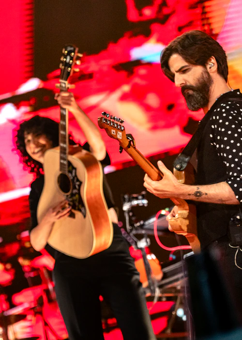 Justo cuando El Mundo Apriete pintó un nuevo lienzo sonoro sobre los corazones presentes, seguido de Bien Por Ti, que levantó de nuevo el ánimo tras un bloque más introspectivo. Con Mala Prensa, el set alcanzó su punto de inflexión: luces estroboscópicas, disparos de humo y una lluvia de confetis que quedó suspendida en el aire, como si el tiempo se detuviera un instante para contemplar la escena.