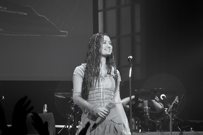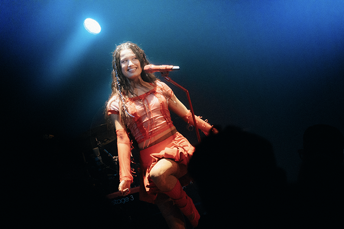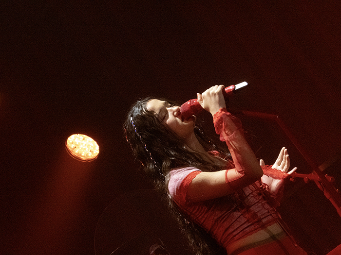 A las 20:40 salió Joaquina, acompañada por tres músicos y vestida de rojo. Inició el concierto sentándose al piano y, desde los primeros minutos, introdujo el concepto de su álbum: la burbuja como un espacio personal de crecimiento y el proceso de romperla como su transición hacia la vida adulta.