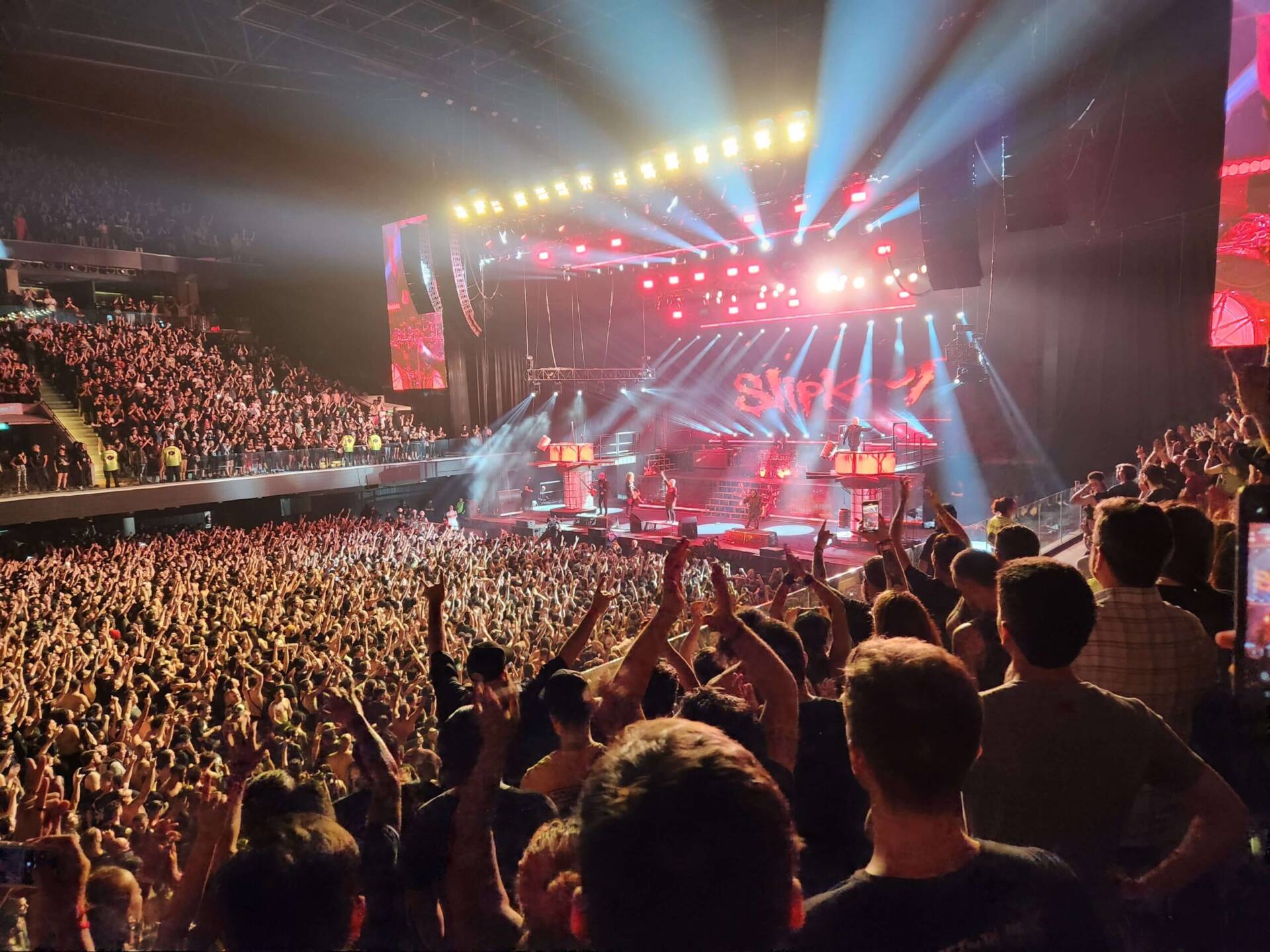 Suenan las notas que marcaban el inicio del show con el tema “Disasterpiece” y cae el telòn, mostrando a la banda dándolo todo en el escenario. No pudieron faltar los temas más importantes de su trayectoria como: “Wait And Bleed”, “Duality”, “Sulfur”, “Psychosocial” y tambien “The Dying Song (Time to Sing)” de su más reciente álbum “The End So Far”(2022) Lo que hizo especial este show es que era el cumpleaños de Corey Taylor, el cual fue entonado por los otros miembros de la banda y el público presente. A su vez, Corey estuvo muy entusiasmado comunicándose con el público en castellano durante toda la noche.