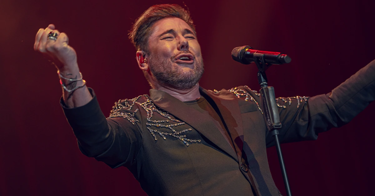En mitad del set, Poveda bajó del escenario. Caminó entre la platea cantando, abriéndose paso con una voz que llenaba cada hueco del pabellón. Dedicó palabras sentidas a sus músicos, nombrándolos uno a uno, sin prisa, agradecido de verdad.
