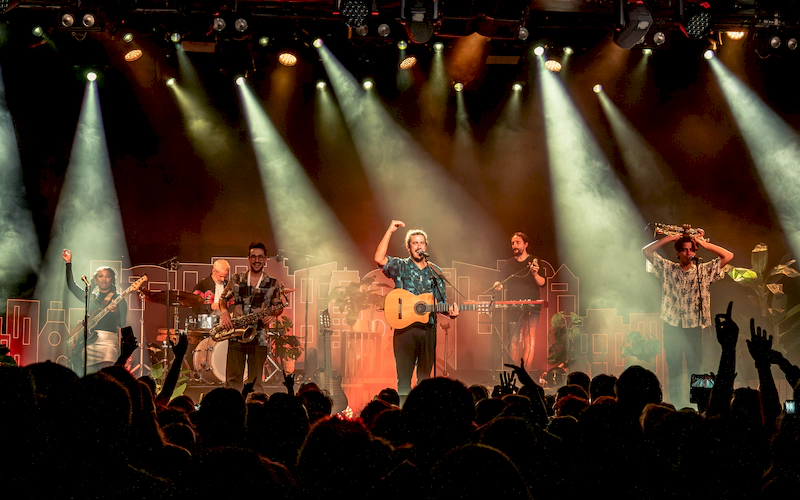 Luces apagadas, humo espeso y una voz femenina en off marcando el terreno: son estados fluidos siempre en conflicto entre sí. Cada uno de ellos está presente también dentro del otro: el caos existe dentro del orden, pero también existe el orden dentro del caos: La frase no era decorativa. Funcionó como manual de instrucciones para lo que vendría después. Los músicos fueron ocupando sus posiciones, hasta que apareció el protagonista, guitarra en mano —su inseparable aliada—, y abrió fuego con Del aire. Primer estallido colectivo. Aplausos, gritos, brazos en alto. Esa fue la tónica de la noche.