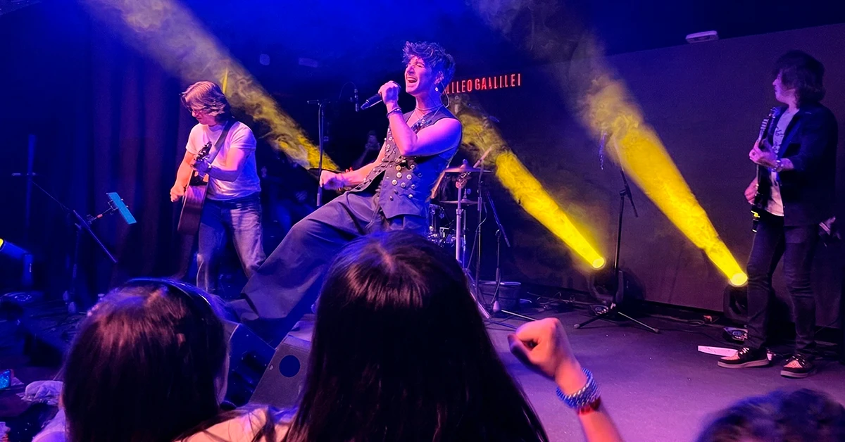La Sala Galileo Galilei tiene algo que los grandes recintos han perdido hace tiempo: personalidad. Íntima, cálida, con esa temática que te hace sentir parte de algo especial. Si no la conoces, ya estás tardando. El público era exactamente lo que uno esperaría de un artista en ascenso con propuesta honesta: una mezcla de jóvenes que ya lo siguen de cerca, familias, niños y gente de todas las edades que llegó dispuesta a disfrutar.