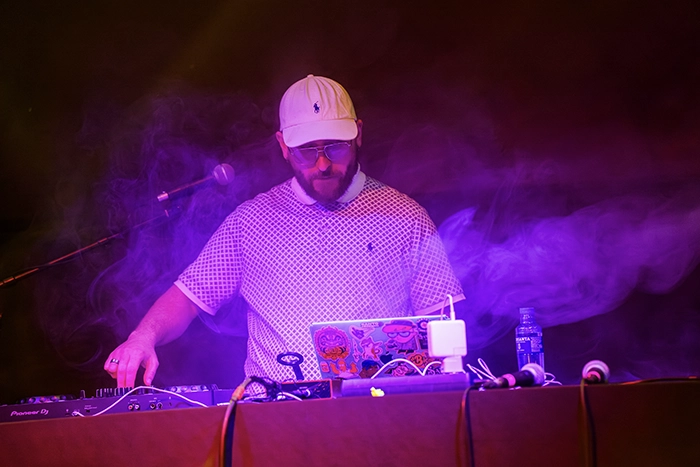 Entre las colaboraciones destacó la aparición del mítico Scrop, quien se sumó al concierto con algunos temas propios que funcionaron como puente hacia la segunda mitad de la noche.