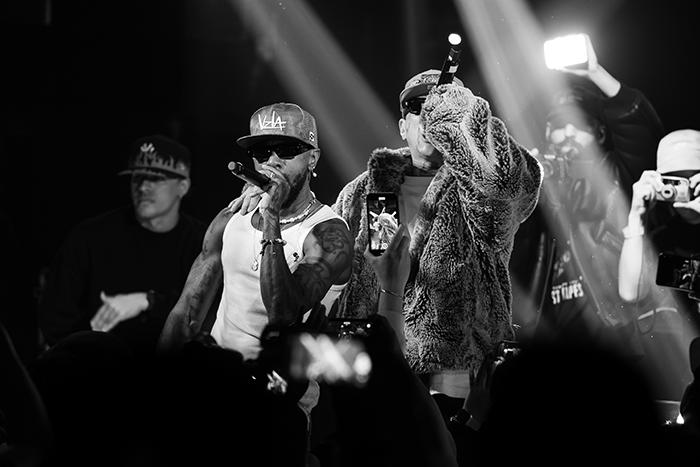 Entre el público también se dejaron ver varias figuras de la escena musical. En la sala estuvo presente Sara Socas, cantante, freestyler y compositora española, así como Morodo, histórico cantante y compositor de reggae en España. Entre la multitud también pudimos reconocer a Mike Cerda “MkC”, otra presencia vinculada al circuito urbano que no quiso perderse la noche.