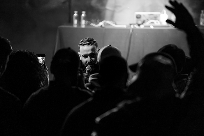El punto de ebullición en la sala Copérnico llegó cuando los artistas abandonaron la tarima para unirse al público a ras de suelo. Apa y Reke desplazaron el reflector hacia sus oyentes más entregados, que se lanzaban a rapear los versos de memoria mientras ellos celebraban y les hacían los coros.