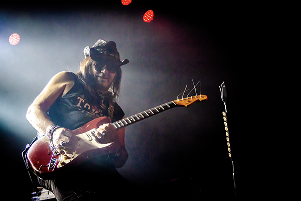 La canción del guerrero arranca con un solo incendiario del titán de la guitarra, en Talismán los teclados cogen protagonismo, y para Rock es Rock!, todo elogio se queda pequeño. No quiero caer en repeticiones, pero verdaderamente, Míster Giardino tiene una relación de amor con la guitarra y hace partícipe de esa unión indisoluble a su público. Su Stratocaster dispara fuego y se observa cómo hipnotiza las largas melenas de los fans.