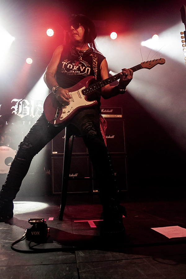 Ingresamos conforme habilitan el acceso a prensa y se podía observar cómo el gentío se disponía y alistaba para ser protagonista de la brutal descarga del combo argentino. Torres de amplificadores Marshall presidían el escenario, dos plataformas que albergaban la colosal batería y los teclados, y un taburete alto en un lateral y casi al borde del stage, son el resultado de nuestro primer análisis visual. Rata Blanca es un grupo que se encuentra en las cuatro décadas de trayectoria y en un estado de forma increíble. Oe, Oé Oé, Rata, Rata, cantaban los seguidores que llenaban la sala. También es para reseñar la amplitud de edades entre los presentes, y se podía observar hasta tres generaciones de la misma familia. Se respiraba un perfume de rock en el ambiente y se avecinaba velada histórica y grande en Madrid. Y vaya si lo fue.