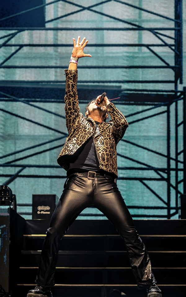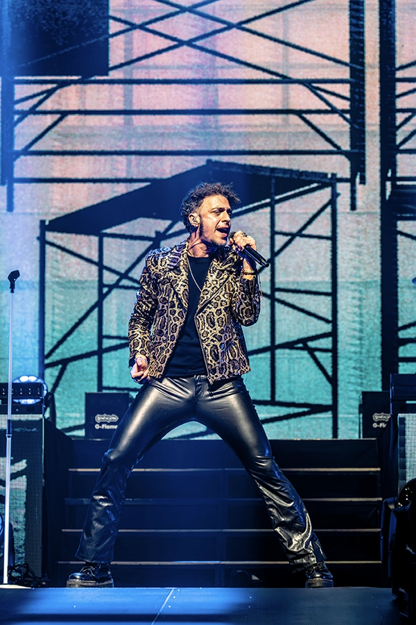 Huelga decir —y no es ninguna exageración— que es fácil acudir al concierto con cierta reticencia a la hora de enfrentarse a su sonido. El cambio generacional es real: algunos códigos semánticos, narrativos y atmosféricos resultan poco accesibles, en una primera capa, para quienes crecieron entre redes sociales y no entre páginas amarillas. No se trata de un rechazo a la propuesta en sí, que siempre debe encararse desde la curiosidad y la disposición al descubrimiento, sino de la distancia natural que existe frente a un imaginario cargado de símbolos y formas propias de otra época. Aun así, esos mismos códigos se traducen en escena en un performance sólido, intenso y cargado de adrenalina.