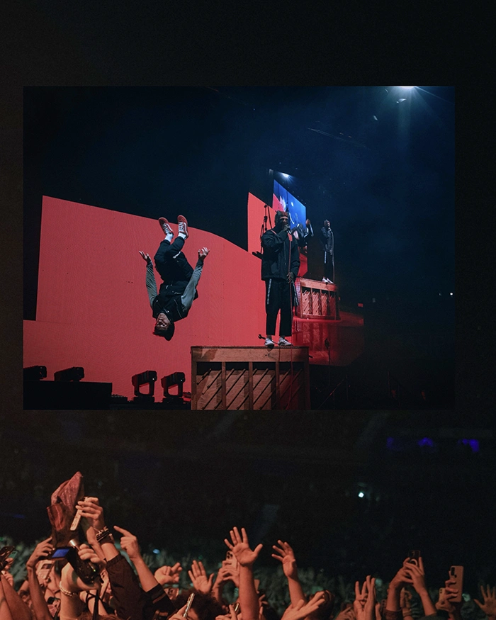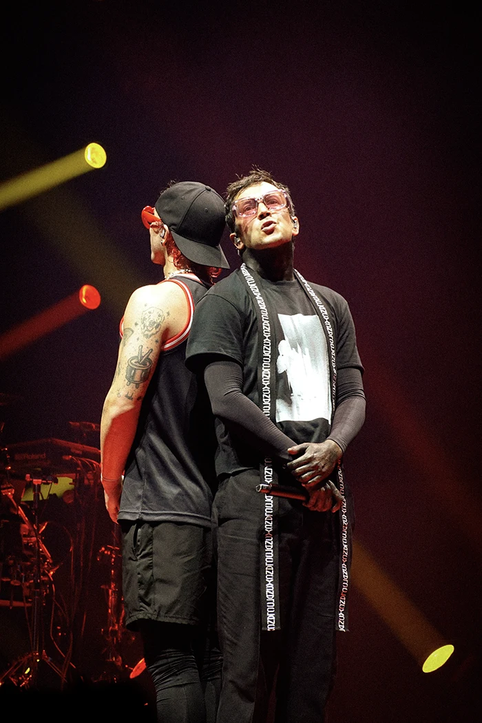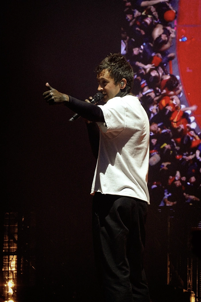 Con Black Slide, la atmósfera se volvió introspectiva. Sintetizadores densos, luces oscuras, Tyler sentado en una silla y el público coreando cada palabra como un mantra. La letra caló hondo: esa sensación de no querer retroceder, de luchar por seguir avanzando.