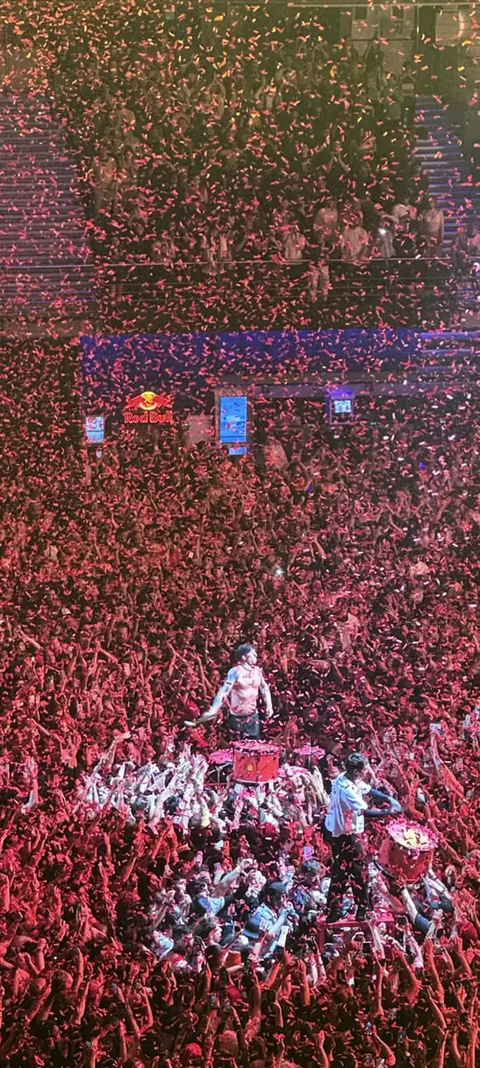 Sin dar tregua, siguieron con Shy Away, y acto seguido, las pantallas gritaron Watch It para dar paso a Heathens. Pirotecnia, luces, visuales: un despliegue sensorial que nos dejó sin aliento. Y sin tiempo para respirar, arrancó Next Semester con una fusión cruda de punk y rock que hizo temblar el suelo. I remember, I remember certain things… rugió el estadio.