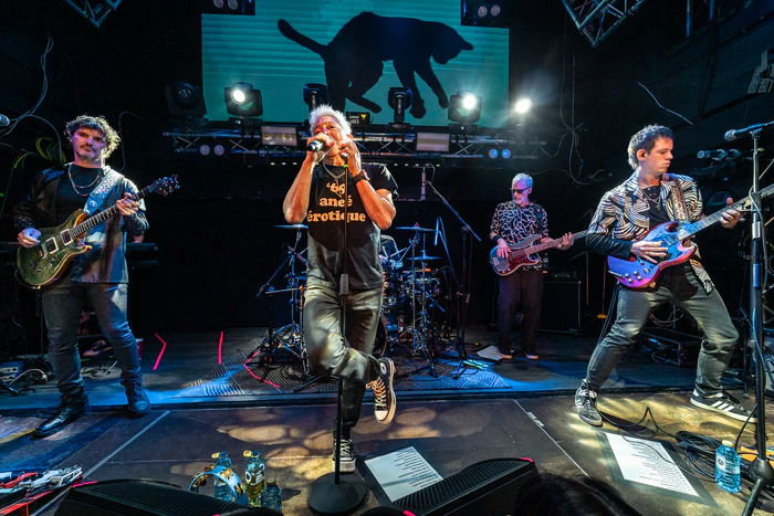 Sin preámbulos, Virus apareció en escena y arrancó con Sin Disfraz. El golpe de entrada fue certero: guitarras limpias, teclados bien presentes y la voz de Marcelo Moura guiando el inicio de un viaje generacional. Apenas terminó el primer tema, llegó Soy Moderno, No Fumo y la pista de baile improvisada que era la sala terminó de encenderse.